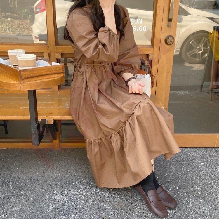 ワンピース レディース ワンピース 春秋 長袖 スリット 無地ワンピース 韓国風ワンピース ロングワンピース 着痩せ 絶対一番安い